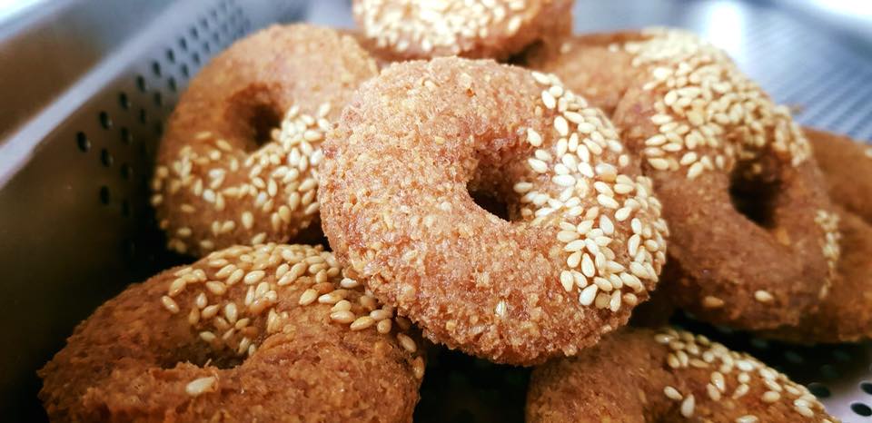 mit Falafel, Ciabatta-Brot, Basilikum, Tomaten, Mozzarella und Kümmel-Mayonnaise
